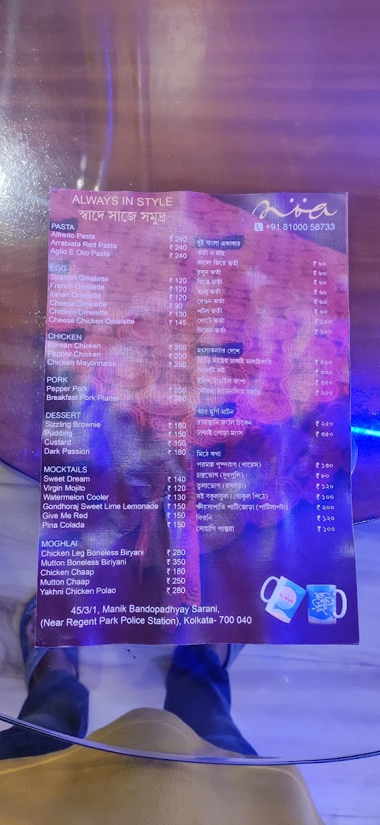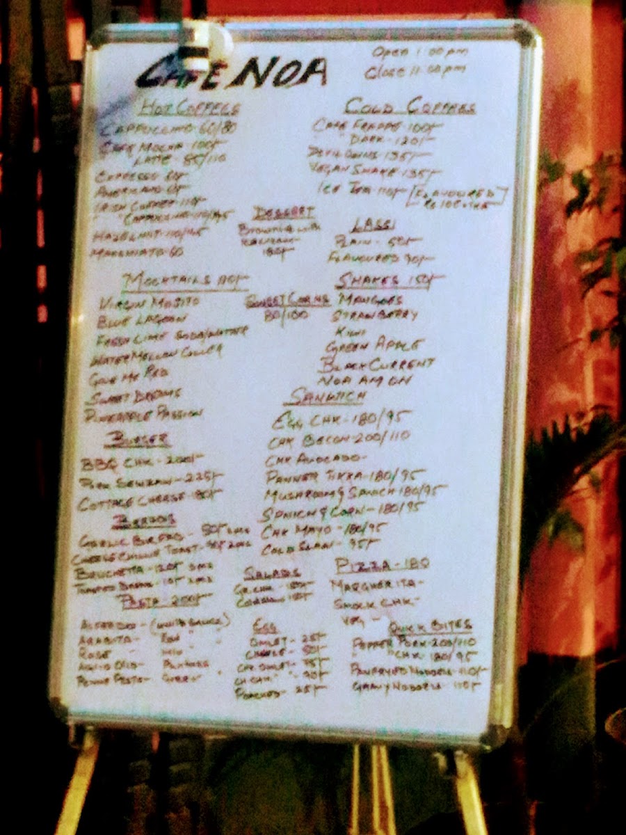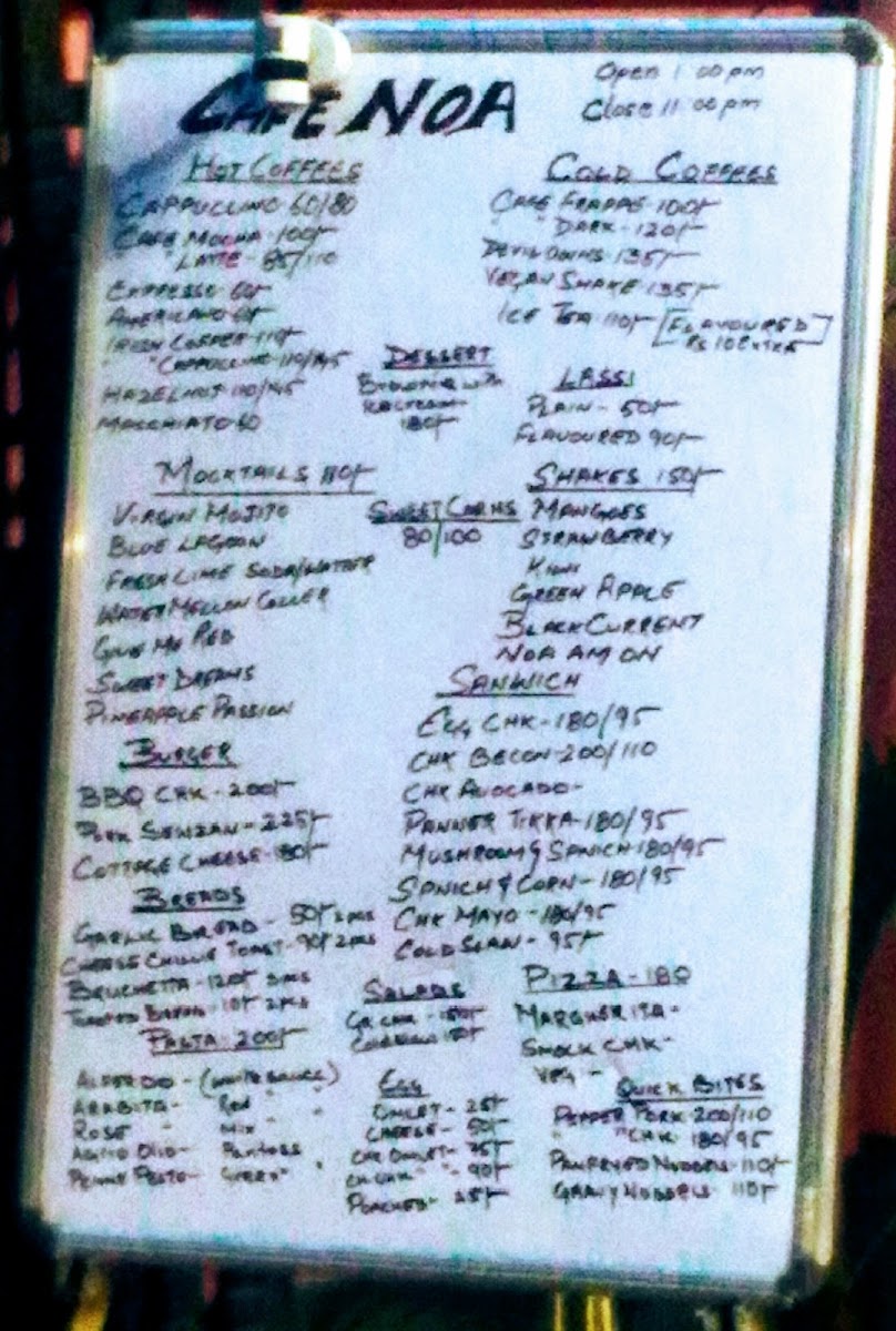 Noa Boutique Cum Cafe Menu